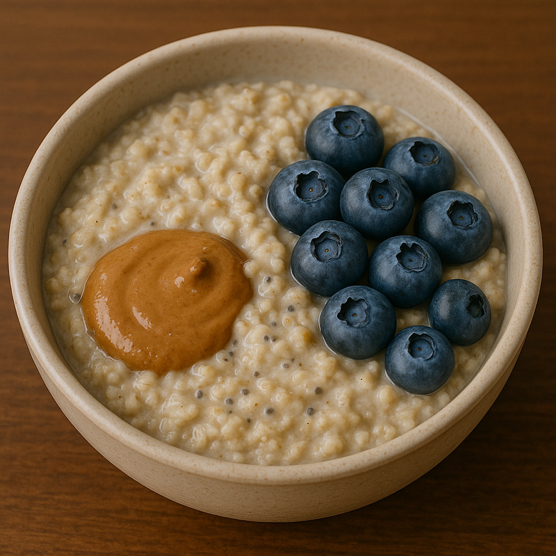 Ontbijt: Havermout met chiazaad, amandelboter en bessen