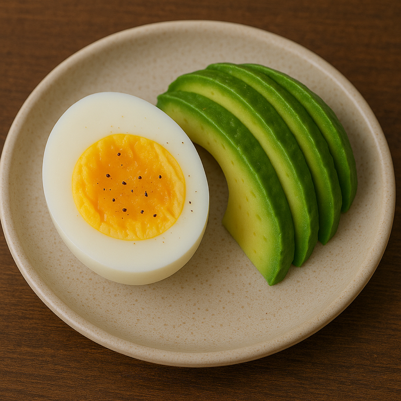 Ingrediënten: 1 groot hardgekookt ei, 1/4 avocado, een snufje zout en peper.